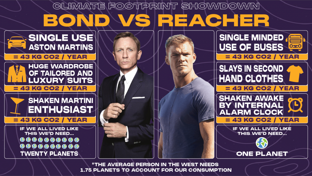 The ideal video should showcase two popular characters from different films/TV series which vary in terms of their carbon footprint. It should be funny and engaging. e.g. see below for an example: